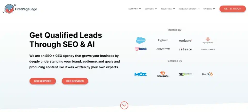 First Page Sage specializes in thought leadership-driven SEO for B2B SaaS companies, combining expert-level content creation with strategic SEO to establish clients as industry authorities. Founded in 2009, they focus on creating standout content that not only ranks highly but also builds long-term brand equity and converts visitors into qualified leads.