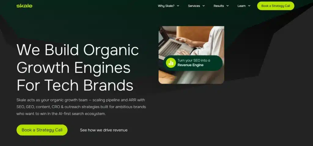 Skale positions itself as an organic growth engine for SaaS brands, focusing on driving real business KPIs over vanity metrics. They provide a dedicated 6-person senior SEO growth team that works hand-in-hand with internal marketing teams, specializing in building multi-million dollar SEO revenue engines with fast CAC payback for ambitious SaaS companies.