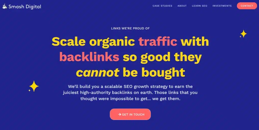 Smash Digital positions itself as “SEO entrepreneurs” who apply strategies from running 17+ of their own companies to grow client businesses. They specialize in high-authority link building and focus on what they call “backlinks so good they cannot be bought,” emphasizing relationships and insider connections over traditional outreach methods.